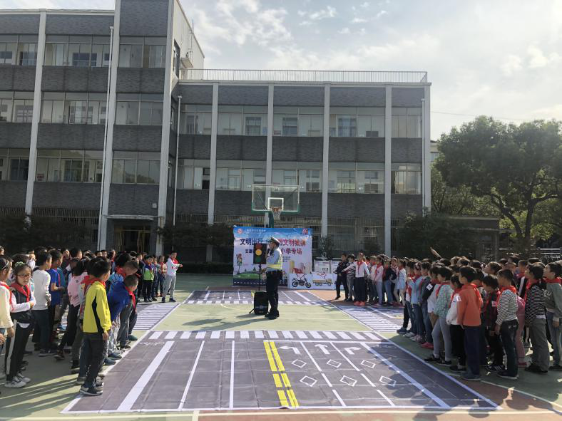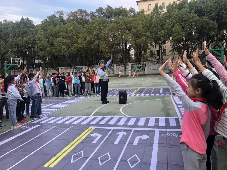 为了进一步推进由上海盈浦社区基金会扶持的《交通安全宣教队扶持项目》,基金会工作人员协交警二大队2名交警走进庆华小学为校区内100余名小学生开展现场“模拟交通路口”普及交通安全知识宣讲活动。