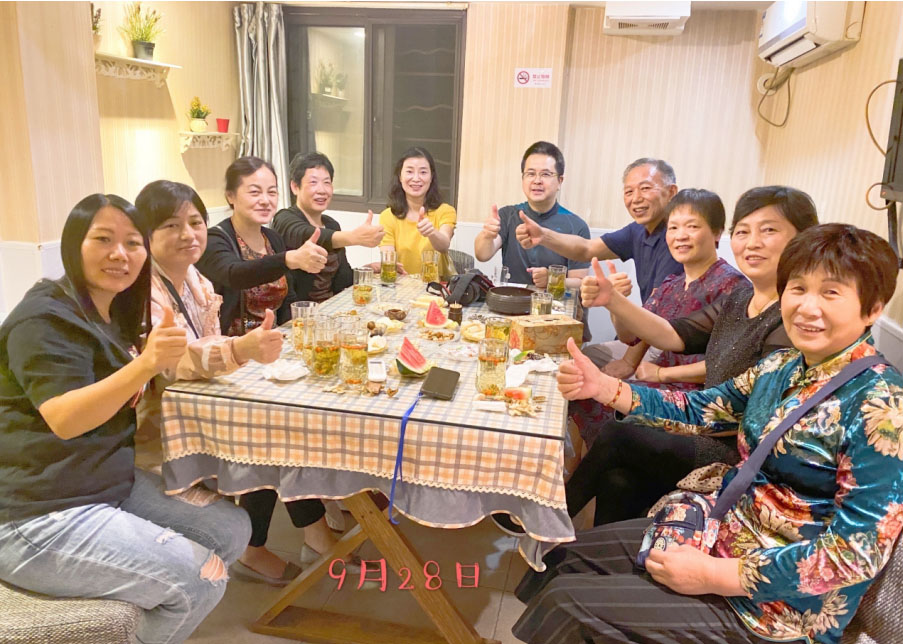 整个团体经历了四年时间,彼此建立起团体活动信任感,在表达情感方面比较能流露,在表达感受过程中感觉无法用言语来述说自己的心理感受,只有表达“开心”,建议是否引导表达感受情绪时的准备多个词语进行选择表达,这样能正确的流露出来团体成员的真实感受。有一位团体成员表述了女儿要结婚了,自己已成为生活中的配角。感觉自己放下了很多,转换角色,她感到也很好。团体中的老陈表达了自己当下的感受,感觉通过自己四年的团体活动收获不少,学会了与女儿的沟通交谈的方式方法,对于女儿的终身大事,终于尘埃落定了,感到非常的开心。现在养成了每天早锻炼的生活习惯,自己和团体成员共同为他感到高兴,精神面貌都焕然一新,感恩这样的活动,使他收获不少。还有一位,退群的成员,虽然不在群里,但是还是联系到了她,她的参与也表明自己是迫不得已离开团体的,再讲诉过程中她流泪。团体的关心没有让她宣泄出全部,带领者在此时此地也进行了澄清和解释,如何处理有情绪的表现。使团体成员明白了今后处理的方式,从中学到知识。