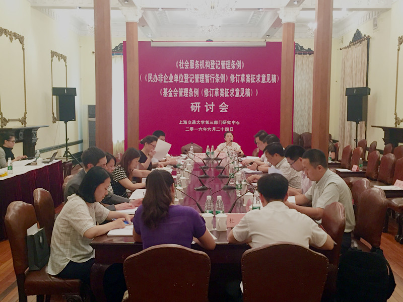 经过一天的讨论,上海交通大学第三部门研究中心整理形成《社会服务机构登记管理条例》(《民办非企业单位登记管理暂行条例》修订草案征求意见稿)和《基金会管理条例(修订草案征求意见稿)》专家意见稿,提交民政部、国务院有关部门决策参考。